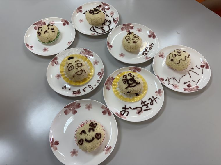 自分で作ったおまんじゅうに可愛くデコレーションをして