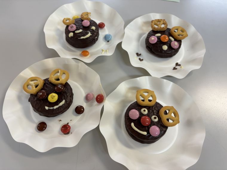 マーブルチョコやクッキーを載せて可愛いトナカイさんを作りました☆