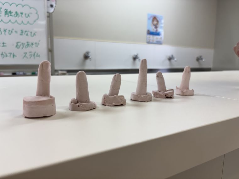 型取りをしていると…「温かい」「ぷくぷくしてきた!」「気持ちいい」など